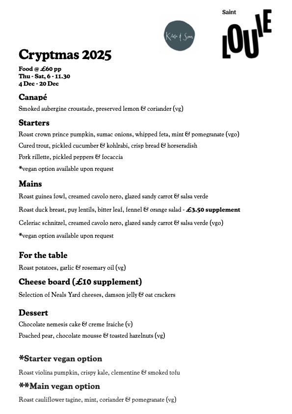 This December, we are teaming up with Chefs Klose & Soan for 9 nights of festive feasting in the 200 year old crypt of St Peter's Church, SE17 2HH